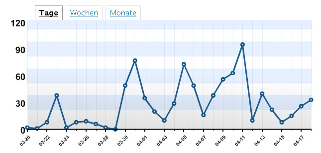 An Spitzentagen 120 Views das sind mindestens 30 Leser/Tag